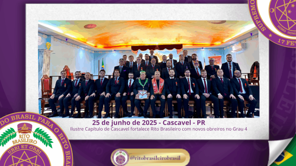 No dia vinte e cinco de junho de dois mil e vinte e cinco, ao Clima de Cascavel, no Paraná, o Ilustre e Sublime Capítulo Filosófico nº 132 do Rito Brasileiro realizou uma significativa Sessão de Iniciação, acolhendo onze novos Obreiros no Grau 4 – Mestre da Discrição, sob a jurisdição da 8ª Delegacia Litúrgica […]