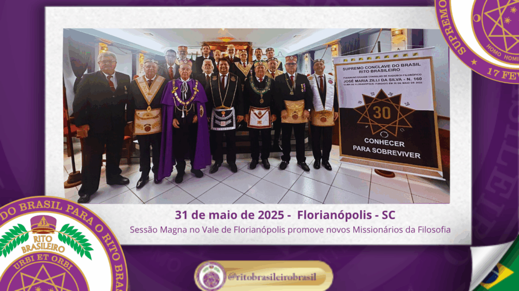 No dia trinta e um de maio do ano de dois mil e vinte e cinco, foi realizada, ao Vale de Florianópolis, a Sessão Magna de colação do Grau 30 – Missionário da Filosofia, no seio do Poderoso Grande Conselho Kadosch Filosófico José Maria Zilli da Silva – nº 160. 🎓 Colação de Grau 30 […]