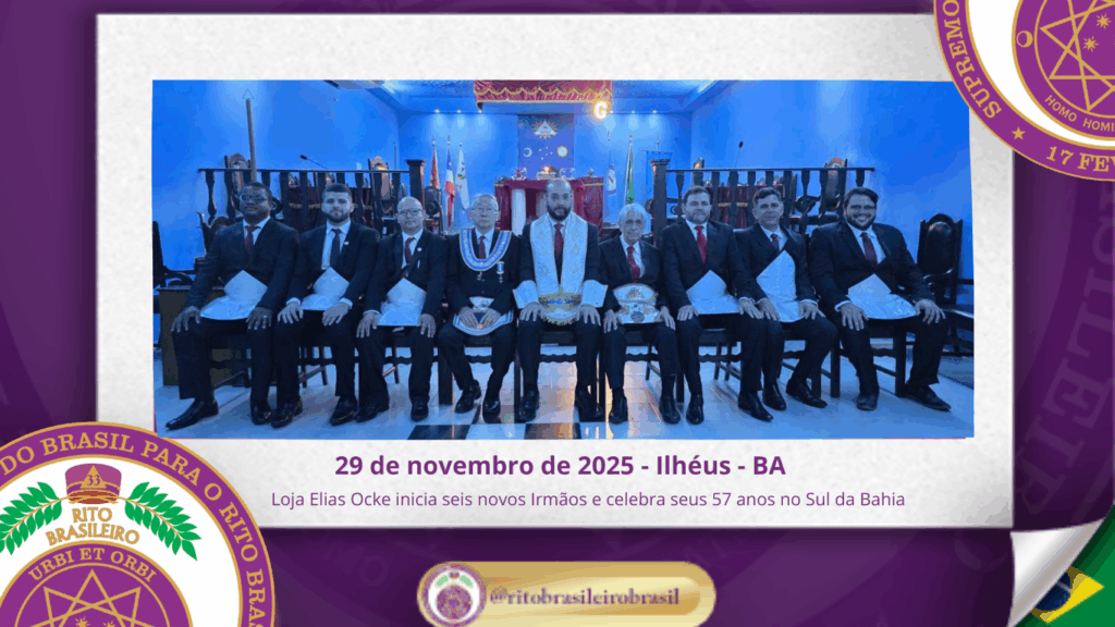 A Augusta e Respeitável Loja Simbólica Elias Ocke, ao Oriente de Ilhéus/BA, comemorou seus 57 anos com uma esplêndida Sessão Magna de Iniciação, que marcou a história da Maçonaria no Sul da Bahia, fortalecendo as colunas do Rito Brasileiro. 🕯️ Uma noite histórica para o Rito Brasileiro na Bahia No dia vinte e nove de […]