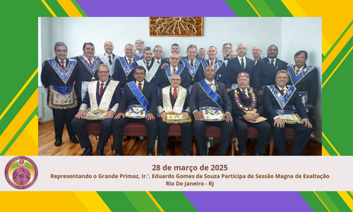 No dia 28 de março de 2025, com a honrosa presença do Sereníssimo Irmão Eduardo Gomes de Souza, Grande Chefe de Gabinete, representando o Grande Primaz, foi realizada uma Sessão Magna de Exaltação ao Grau de Mestre Maçom, marcando um momento de grande significado para a Oficina e para os Irmãos exaltados. Sob a presidência […]