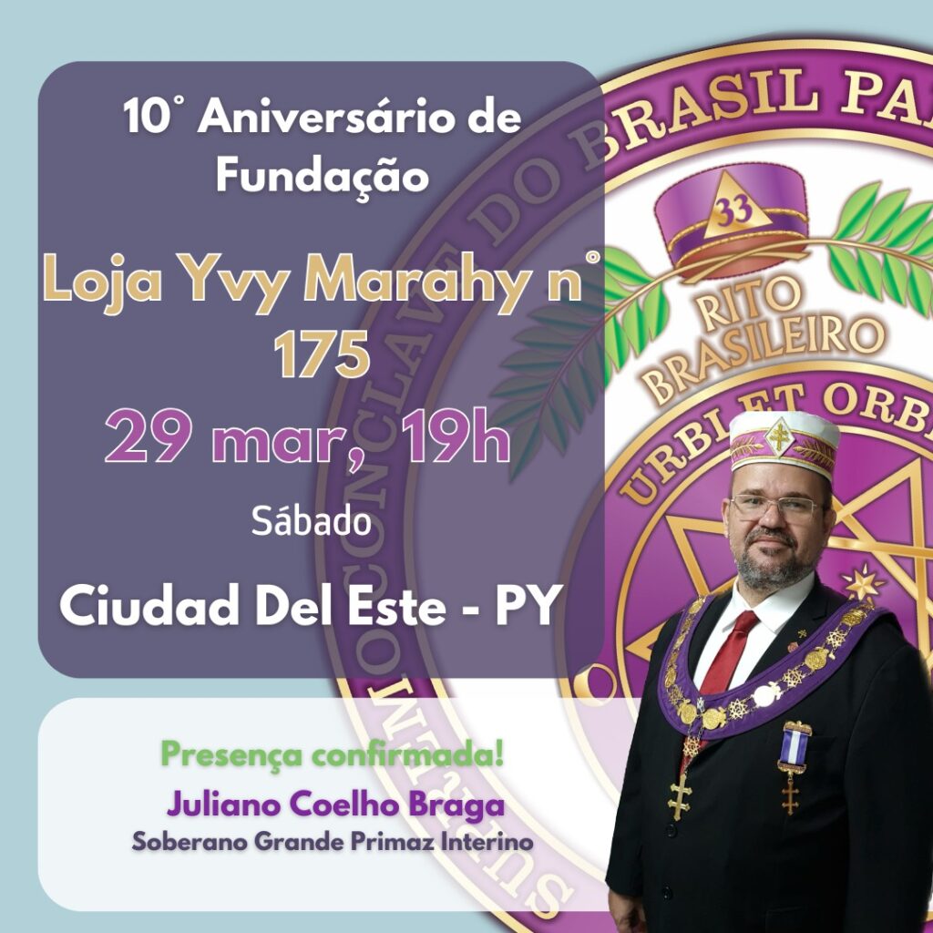 No dia dez de abril de dois mil e vinte e cinco, foi realizada, no templo situado na Casa do Rito Brasileiro, ao Oriente do Rio de Janeiro, a cerimônia de Elevação ao Grau de Mestre Maçom do irmão Renan de Barros Mourão, Secretário Executivo do Supremo Conclave do Brasil para o Rito Brasileiro de […]
