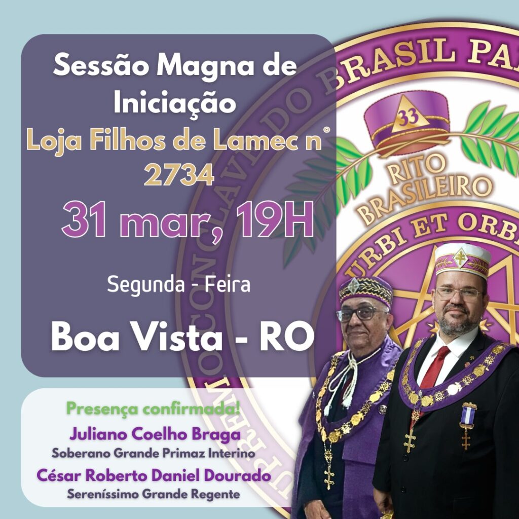 No dia oito de abril de dois mil e vinte e cinco, foi realizada no Ilustre e Sublime Capítulo Poty, nº 70, ao Clima do Piauí, uma Sessão Magna de Iniciação no Grau 4 – Mestre da Discrição, de três Ilustres Irmãos: Gabriel Villas Boas Orengo de Carvalho, João Morais Lima e Jorge Araújo Bezerra. […]