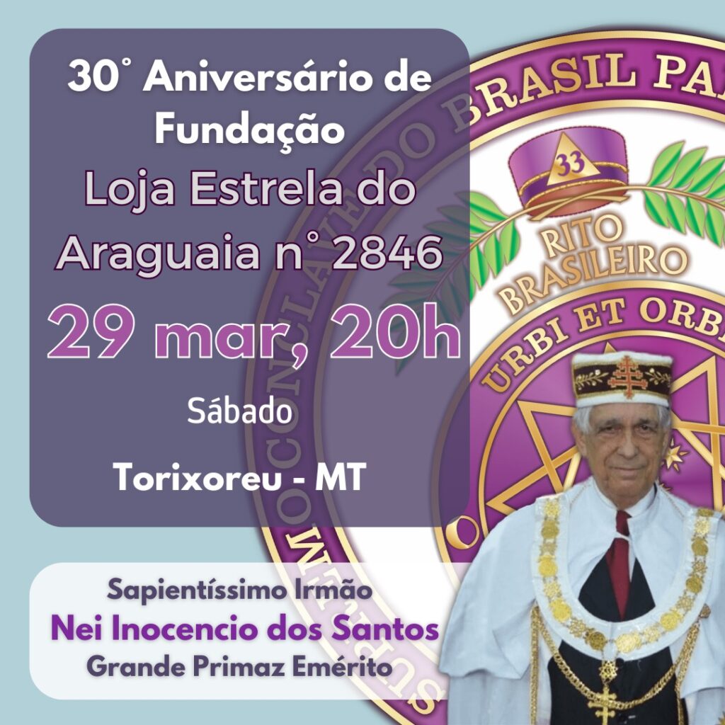 No dia cinco de abril de dois mil e vinte e cinco, no Oriente de Aragarças, Estado de Goiás, o Colendo Alto Colégio Serra Azul nº 226, sob a presidência do Egrégio Mestre José Delfino Sampaio Neto, realizou uma solene Sessão de Iniciação de dois ilustres irmãos ao Grau 31 – Guardião do Bem Público, […]