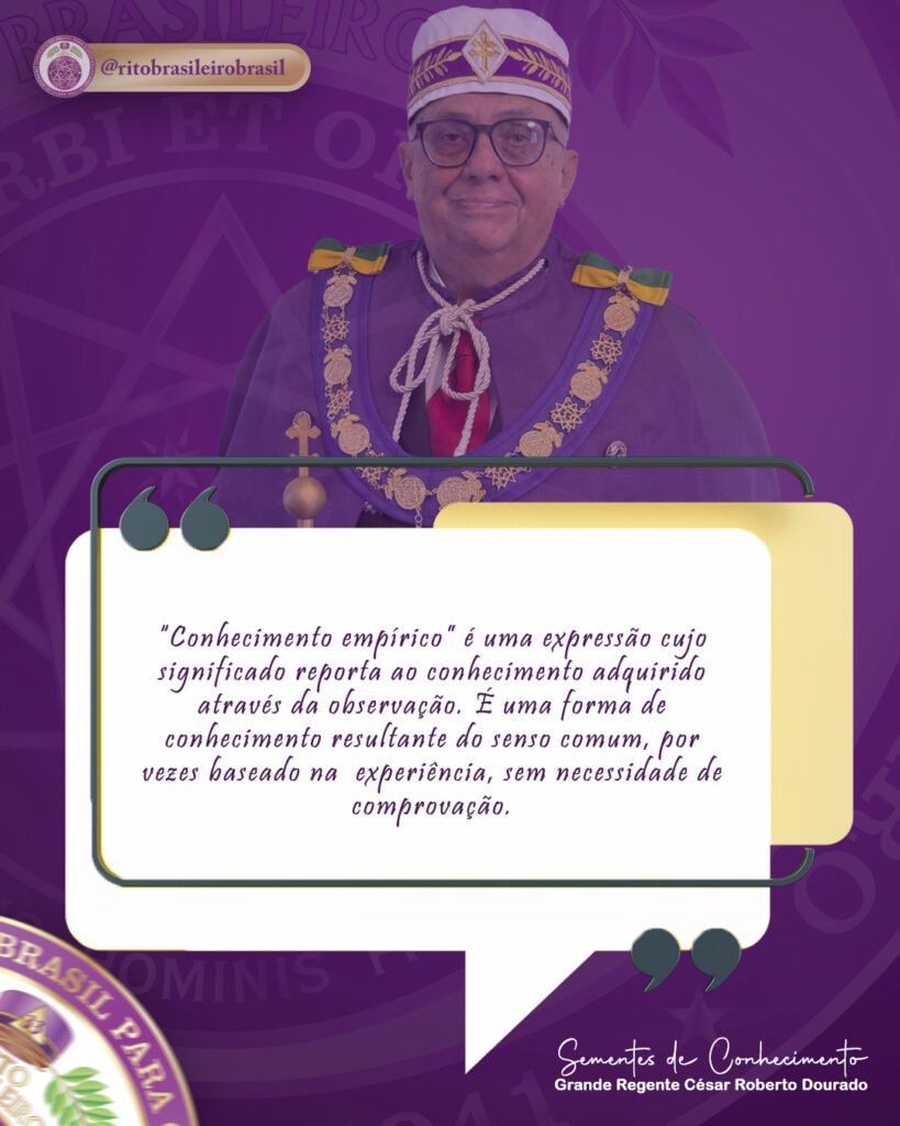 “Conhecimento empírico” é uma expressão cujo significado reporta ao conhecimento adquirido através da observação. É uma forma de conhecimento resultante do senso comum, por vezes baseado na experiência, sem necessidade de comprovação. Sementes de ConhecimentoGrande Regente César Roberto Dourado