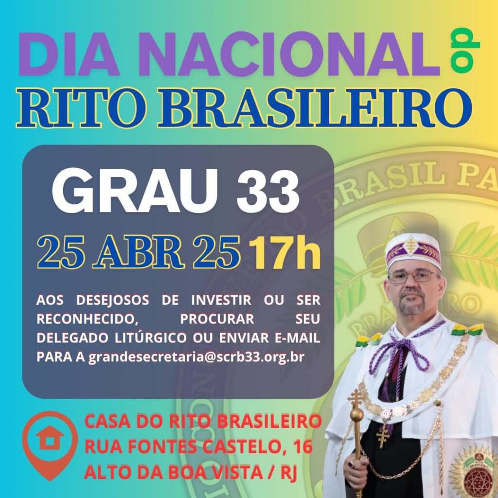 No dia 25 de abril, celebraremos com grande entusiasmo o Dia Nacional do Rito Brasileiro, um momento único e de profunda importância para todos os envolvidos com a nossa Ordem. Neste dia especial, ocorrerá a investidura e o reconhecimento de novos servidores da Ordem, da Pátria e da Humanidade, na ilustre Casa do Rito Brasileiro. […]