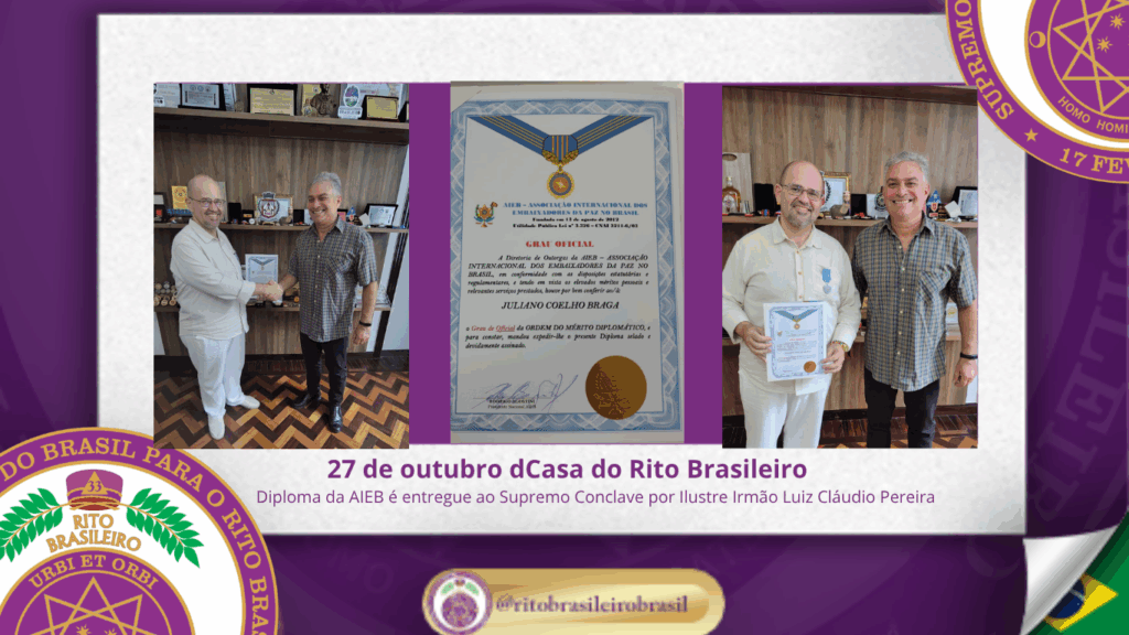 No dia vinte e sete de outubro de dois mil e vinte e cinco, o Supremo Conclave do Brasil teve a Honra de registrar um momento de grande significado para o Rito Brasileiro. O Soberano Grande Primaz Juliano Coelho Braga recebeu em seu Gabinete a visita do Ilustre Irmão Luiz Cláudio Pereira, Cavaleiro Rosa-Cruz (Grau […]