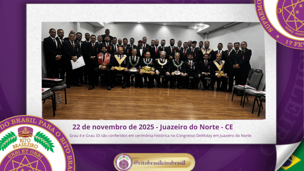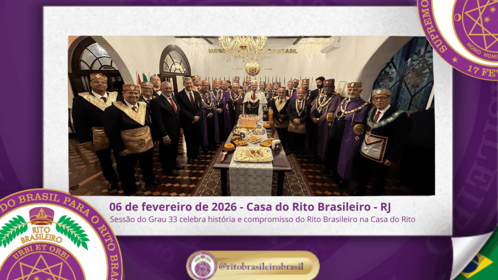 No dia 6 de fevereiro de 2026, a Casa do Rito Brasileiro, sede do Supremo Conclave do Brasil para o Rito Brasileiro de Maçons Antigos, Livres e Aceitos, foi palco de uma solene Sessão Magna de Investidura ao Sumo Grau 33 – Servidor da Ordem, da Pátria e da Humanidade. 🎖 Investidura de Oito Novos […]