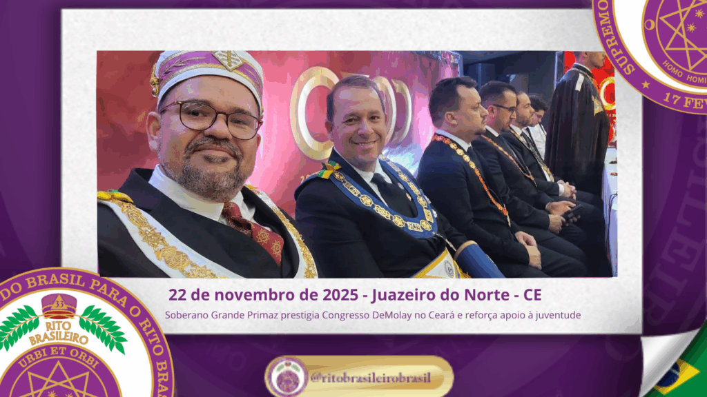 No dia vinte e dois de novembro de dois mil e vinte e cinco, o Soberano Grande Primaz Juliano Coelho Braga participou do Congresso Estadual da Ordem DeMolay no Estado do Ceará, realizado ao Vale de Juazeiro do Norte, ocasião marcada por fraterna integração entre as Ordens Maçônica e Paramaçônica. 🤝 Presenças Ilustres no Congresso […]