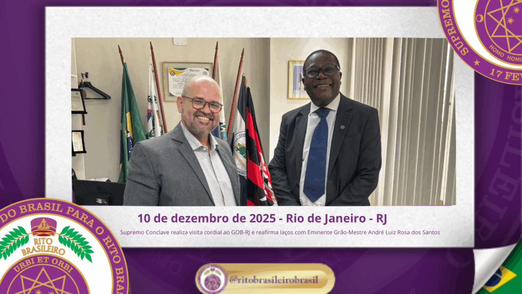 No dia dez de dezembro de dois mil e vinte e cinco, o Soberano Grande Primaz do Rito Brasileiro, Juliano Coelho Braga, realizou uma visita institucional à sede administrativa do Grande Oriente do Brasil do Rio de Janeiro (GOB-RJ), sendo calorosamente recebido pelo Eminente Irmão Grão-Mestre Estadual André Luiz Rosa dos Santos. 🤝 União sólida […]