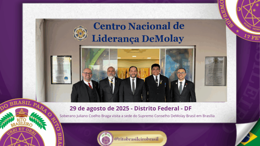 No dia vinte e nove de agosto de dois mil e vinte e cinco, em Brasília, o Soberano Grande Primaz Juliano Coelho Braga realizou uma importante visita institucional à sede do Supremo Conselho DeMolay Brasil, sendo fraternalmente recepcionado pelo Grande Mestre Nacional Diego José, 33°, em uma agenda marcada pelo diálogo, integração e fortalecimento dos […]