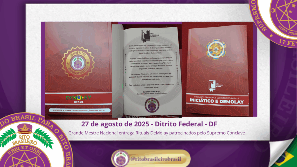 No dia vinte e sete de agosto de dois mil e vinte e cinco 📘 Supremo Conclave recebe com Honra o Primeiro Exemplar dos Rituais DeMolay do SCDB Durante as comemorações da Sessão Magna de Investidura ao Sumo Grau 33 – Servidor da Ordem, da Pátria e da Humanidade, realizada na sede do GOB-DF, o […]