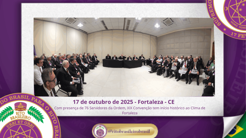 📘 Abertura da XIX Convenção: Credenciamento e Reunião dos Membros Efetivos marcam início dos trabalhos ao Clima de Fortaleza No dia dezessete de outubro do ano de dois mil e vinte e cinco, teve início, ao Clima de Fortaleza, a XIX Convenção Nacional do Rito Brasileiro de Maçons Antigos, Livres e Aceitos, um marco histórico […]