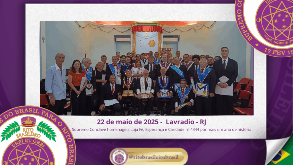 No dia vinte e dois de maio de dois mil e vinte e cinco, a Augusta e Respeitável Loja Simbólica Fé, Esperança e Caridade, nº 4344, ao Oriente do Lavradio – RJ, realizou uma Cerimônia Magna em comemoração ao seu aniversário de fundação. O evento foi marcado por um clima de fraternidade, reverência e celebração […]