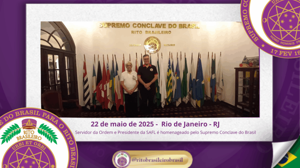 Na tarde de vinte e dois de maio de dois mil e vinte e cinco, o Sapientíssimo irmão Ricardo Volpe Maciel, Presidente da Soberana Assembleia Federal Legislativa do Grande Oriente do Brasil e Servidor da Ordem, da Pátria e da Humanidade — Sumo Grau 33 do Rito Brasileiro — visitou a Casa do Rito Brasileiro. […]
