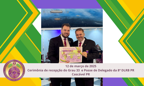 Na noite memorável de 12 de março de 2025, a cidade de Cascavel, Paraná, foi palco de um evento de grande importância para a comunidade maçônica, marcando um momento solene e de profundo significado. O Soberano Primaz Juliano Coelho Braga abrilhantou o encontro com sua presença ao participar da cerimônia de recepção do Grau 33 do Irmão Lauro Luiz Stoinski. Este é um grau de destaque, simbolizando o ápice de conquistas pessoais e dedicação dentro da Ordem. O certificado do Grau 33 do Irmão Lauro foi entregue por seu filho, Luiz Fernando de Vicente Stoinski, Grande Secretário da 8ª Delegacia Litúrgica do Paraná.