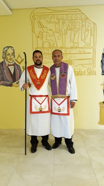 Como tradicionalmente o faz, o Ilustre e Sublime Capítulo LUX VERITAS Nº 98, presenteou à todos os Irmãos com os paramentos do Grau 18, pela sua dedicação e empenho na sua chegada a este grau, e em momento de grande emoção, o Il.’. Ir.’. Aterzata HERMES BORGES MACHADO, cingiu seu filho, o Il.’. Ir.’. MATHEUS CIPRIANI MACHADO com as alfaias de Cavaleiro Rosa Cruz.