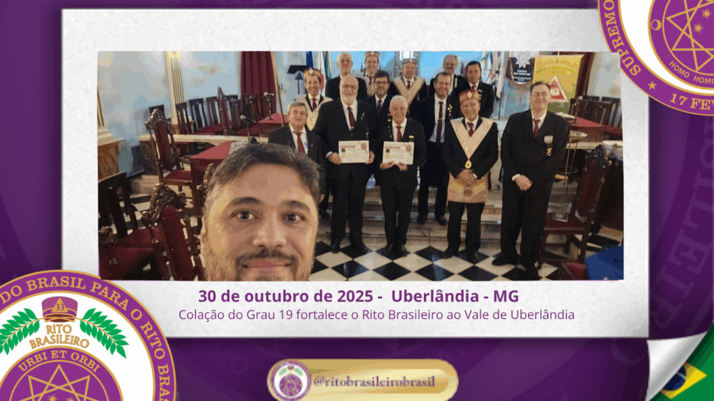 No dia trinta de outubro de dois mil e vinte e cinco, foi realizada, ao Vale de Uberlândia, no Poderoso Grande Conselho Kadosch Filosófico do Triângulo nº 139, a Sessão Magna de Colação do Grau 19 – Missionário da Agricultura e da Pecuária.