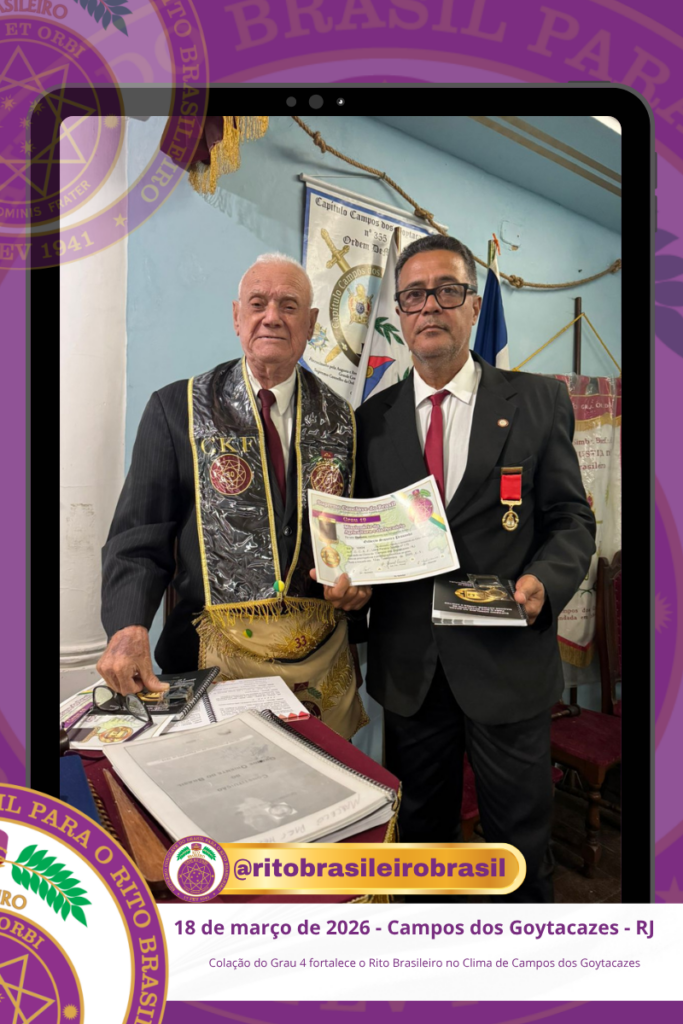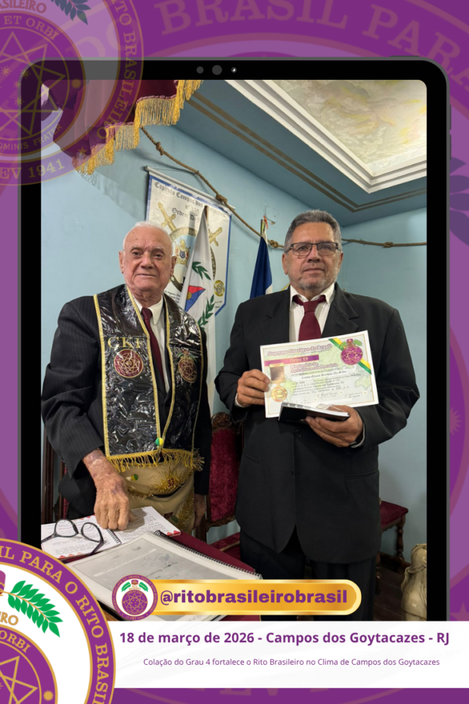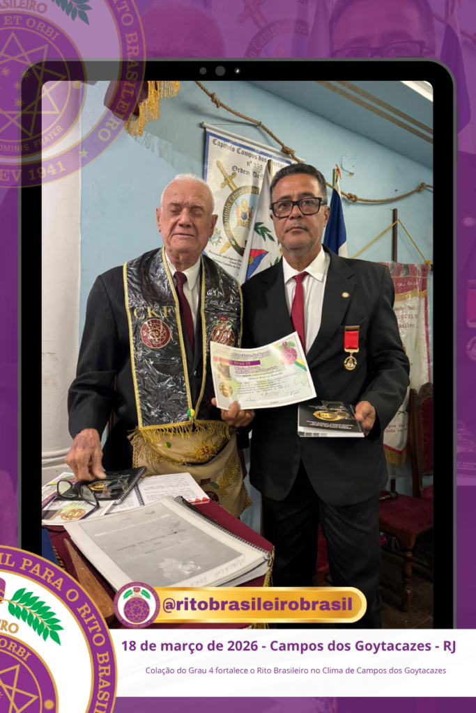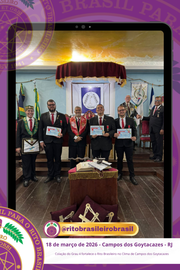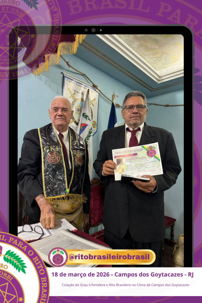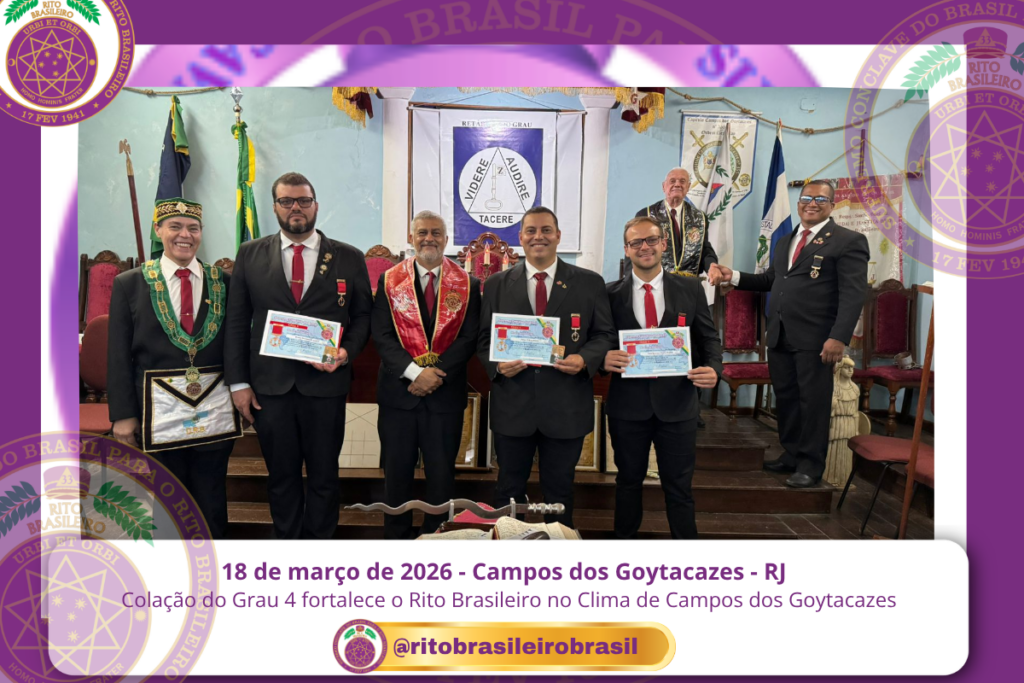 No dia 18 de março de 2026, o O Ilustre e Sublime Capítulo Bernadino Maria Filho nº 109, no Vale de Campos dos Goytacazes, no Clima do Rio de Janeiro, realizou a Sessão de Colação do Grau 4 – Mestre da Discrição dos Ilustres Irmãos Bruno Alcantara de Castro, Luis Henrique Toledo Gandra e Valmir Ribeiro Junior.