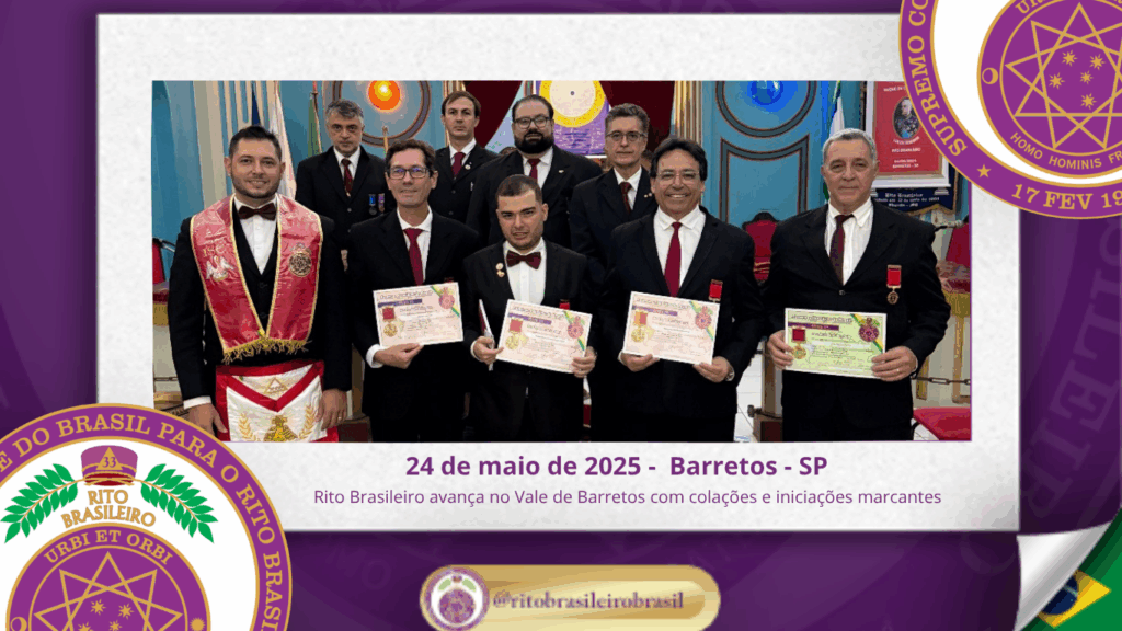 No dia vinte e quatro de maio de dois mil e vinte e cinco, ao Vale de Barretos/SP, o Ilustre e Sublime Capítulo Duque de Caxias, nº 139 realizou Sessões Magnas de Colação dos Graus 14 – Mestre da Perseverança e 15 – Mestre da Liberdade, fortalecendo o compromisso com os Altos Graus Filosóficos do Rito Brasileiro no seio da 15ª Delegacia Litúrgica.