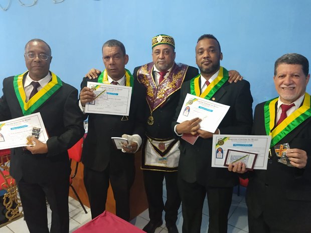 Colaram o Grau 26 – MISSIONÁRIOS DA PAZ, dos Altos Graus do Rito Brasileiro, os Poderosos Irmãos Missionários da Economia: ZELITO, JORGINEI SIQUEIRA e ISSAC JORGE DA SILVA, em Sessão Magna de Câmara de Grau 26 presidida pelo Em∴ Ir∴ ALTAIR PAULA DA SILVA 33º, Grão Prior do Alto Corpo.
