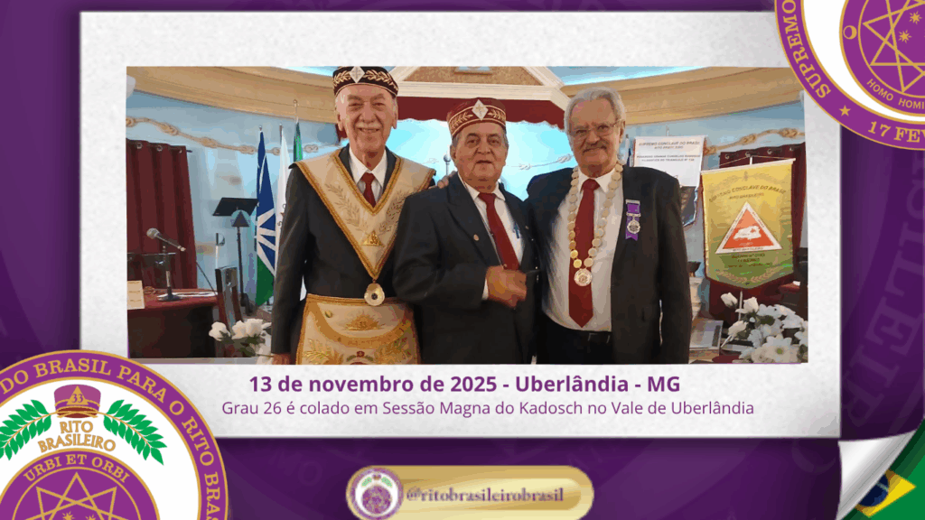 A Sessão transcorreu em clima de Harmonia e elevado simbolismo, reafirmando os princípios que norteiam os Altos Graus Filosóficos do Rito Brasileiro e a missão do Poderoso Grande Conselho Kadosch Filosófico em fortalecer os valores da Ordem no Vale de Uberlândia.