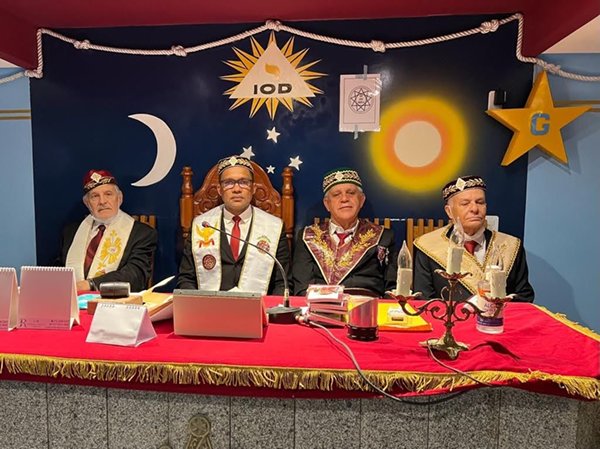 Ornaram o Altar do Egrégio Mestre Em.’. Ir.’. EMERSON VASCONCELOS, à sua direita o Em.’. Ir.’. ALDAIR NEDER 33º e à sua esquerda os EEm.’. IIr.’. GENIVALDO LACERDA SILVA 33º e VIVALDO AFONSO DO REGO 33º.