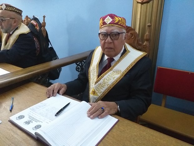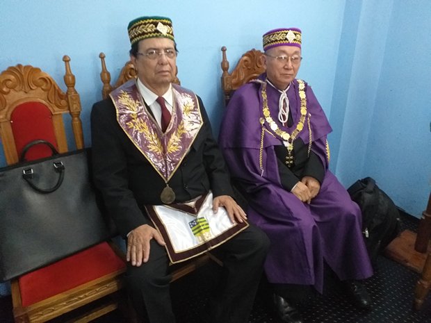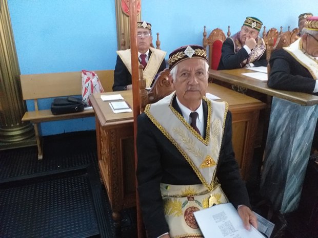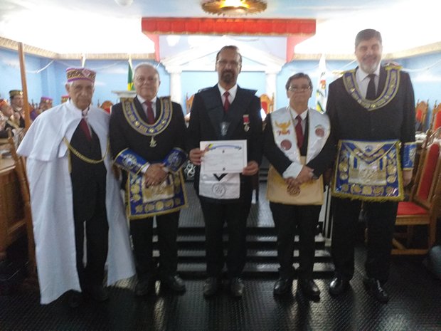 O Preclaro Ir∴ Guardião do Bem Público SEBASTIÃO PEREIRA GOMES, após ter sido admitido no interior da Câmara de Grau 32, acompanhado do Grande Mestre de Cerimônias, foi convidado a tomar assento E∴ CCol∴, e foi submetido às narrativas do Grau, e também conheceu a sua doutrina. (Fotos acima)