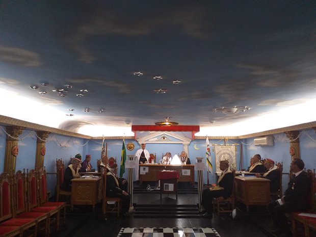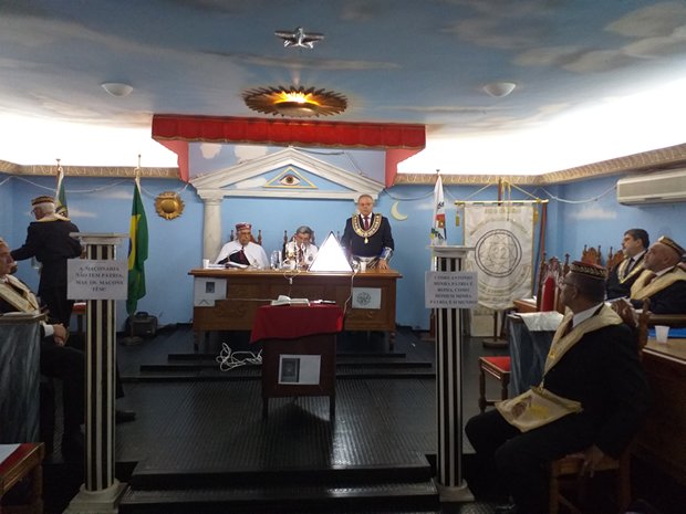 O Altar do Em∴ Ir∴ Egrégio Mestre Mauro Magalhães Aguiar 33º, tendo à sua direita o Sob∴ Ir∴ Nei Inocencio dos Santos 33º, e à sua esquerda o Em∴ Ir∴ Reginaldo Gusmão de Albuquerque