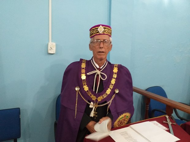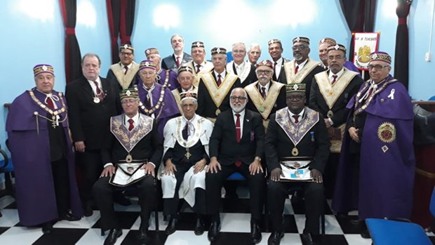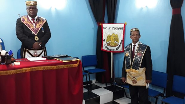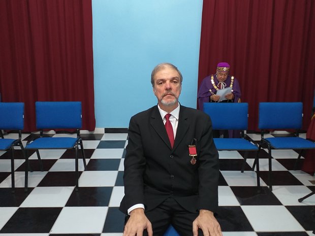 Na foto, à esquerda o Em∴ Ir∴João Dias 33º, e à direita, o Em.’. Ir.’. Altair Paula da Silva 33º, Gr∴ Prior do Pod∴ G∴ C∴ K∴ F∴ Pioneiros de Guaratiba Nº 146