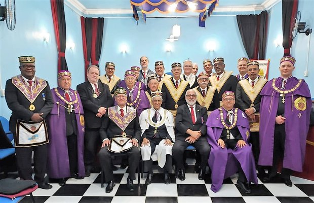Compareceu para realizar a magna sessão o Sob∴ Ir∴ NEI INOCENCIO DOS SANTOS 33º, Grande Primaz do Rito Brasileiro, acompanhado da sua comitiva constituída pelos Sereníssimos Irmãos Grau 33: CESAR ROBERTO DANIEL DOURADO 33º, JOSÉ DA ROCHA LEMOS 33º, JOSÉ JOÃO MACHADO 33º, CEZAR FELLINI LAZZAROTTO 33º, VINICIUS REZENDE MARINHO 33º e ACÁCIO RAMOS DE ARAUJO 33º; os Eminente Irmãos JORGE ROMEIRO e JOÃO DIAS 33º, Delegados Litúrgicos do Rito Brasileiro para as 6ª e 11ª Regiões Litúrgicas do Estado do Rio de Janeiro, ainda, as presenças dos EEm∴ IIr∴ Presidentes de Altos Corpos do Rito Brasileiro JOÃO BOSCO LAVIOLA, do Pod∴ G∴ C∴ K∴ F∴ WASHINGTON LUIZ Nº 105 e ALTAIR PAULA DA SILVA, do Pod∴ G∴ C∴ K∴ F∴ PIONEIROS DE GUARATIBA Nº 146, e também dos Eminentes IIr.’. Grau 33 Extranumerários: PEDRO BEZERRA DE MENEZES 33º, que no simbolismo é o Presidente da Poderosa Assembleia Estadual Legislativa do GOB-RJ, SADI HERCULANO FILHO 33º, SILVÉRIO PAES TAVARES 33º, ALCIDES MARINHO JUNIOR 33º, ROGÉRIO DOS SANTOS OLIVEIRA 33º, ROSSINI CORRÊA ISAIAS 33º, JOSÉ CLAUDIO PARANHOS 33º, EDSON POLTRONIERI 33º, PAULO ROBERTO F. DE SOUZA 33º, LUIS ANTONIO DE MELO MALAFAIA e ainda a visita do Patriarca Ir.’ GILSON TIÚBA, Grau 33º do Rito Adonhiramita, que no simbolismo é o Venerável Mestre da Loja do Ir.’., que nessa data foi elevado ao Grau 32.