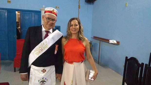 O Em.’. Ir.’. ELSON FERREIRA DOS REIS 33º ao lado da sua esposa e madrinha, a cunhada MARIA DE SANTANA DOS REIS