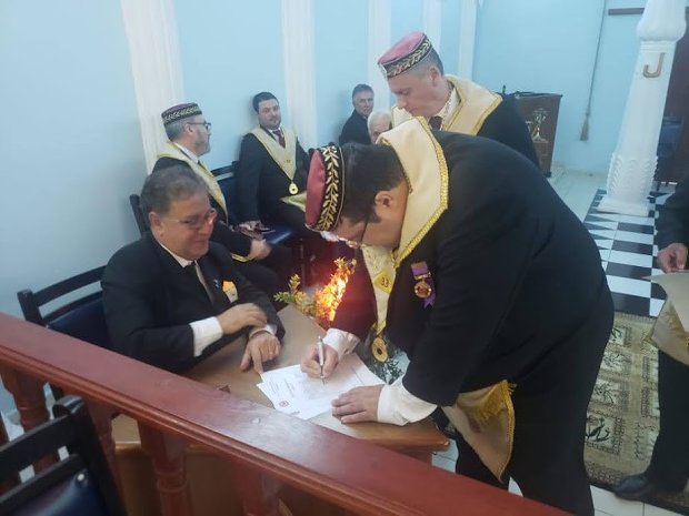 Após a saída de todos os não Maçons, os Eminentes Irmãos recém investidos no Grau 33 assinaram o Livro de Presença e tomaram os seus respectivos assentos.
