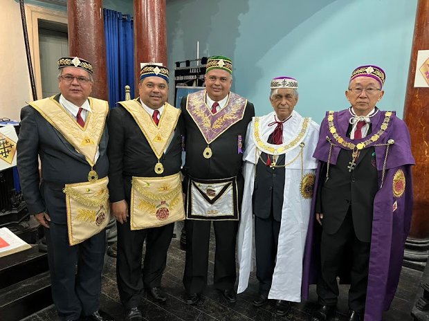 Os demais Irmãos sendo revestidos com os paramentos do Sumo Grau 33 e apresentando as suas credenciais recebidas