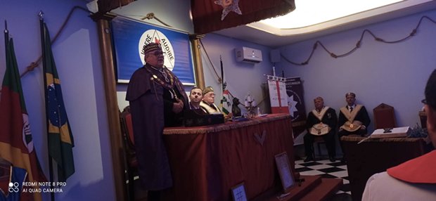 Em suas palavras o Sereníssimo Irmão EVANDRO BANDEIRA LECEY 33º, Membro Efetivo da Magna Reitoria do Supremo Conclave do Brasil, elencou a importância dos Altos Graus do Rito Brasileiro, trouxe o fraternal abraço do Soberano Irmão NEI INOCENCIO DOS SANTOS 33º, Grande Primaz do Supremos Conclave do Brasil.