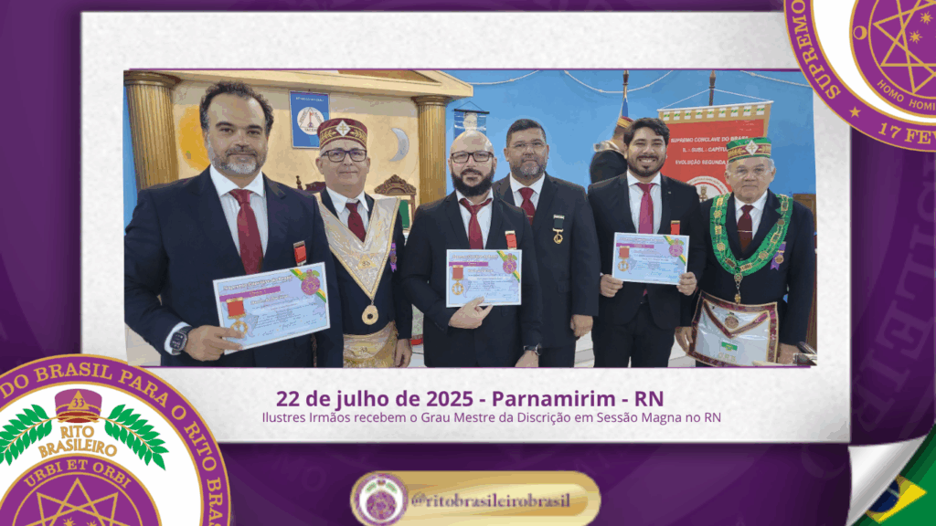 No dia vinte e dois de julho de dois mil e vinte e cinco, no Ilustre e Sublime Capítulo Evolução Segunda nº 80, ao Vale de Parnamirim, no Clima do Rio Grande do Norte, foi realizada a Sessão Magna de Colação do Grau 4 – Mestre da Discrição, da hierarquia dos Altos Graus do Rito Brasileiro de Maçons Antigos, Livres e Aceitos.