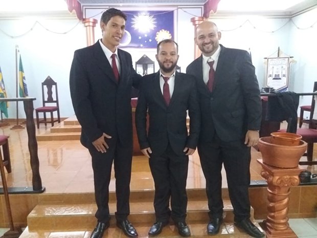 À partir da esquerda os candidatos à ingressarem na Ordem Maçônica: Marcelo Kronbuaer, Weliton Gonçalves e Reginaldo Gonçalves