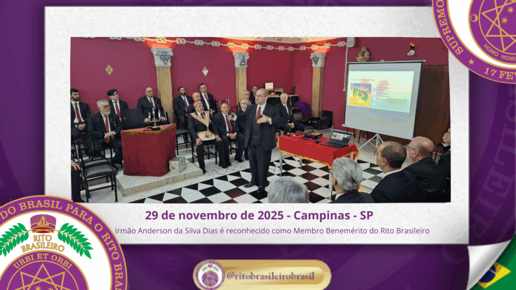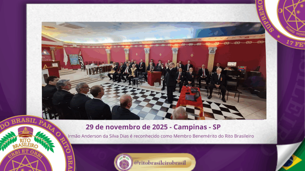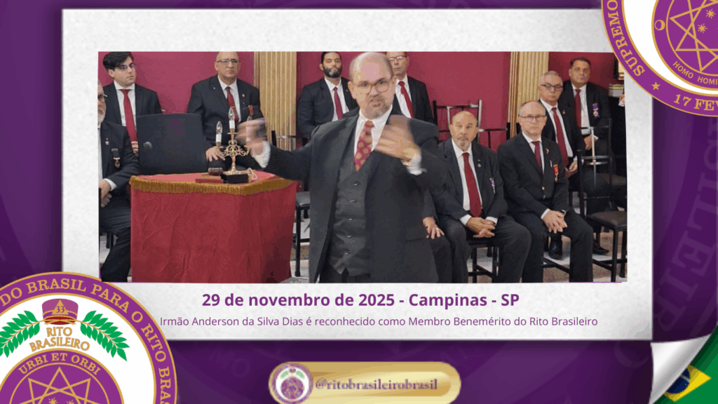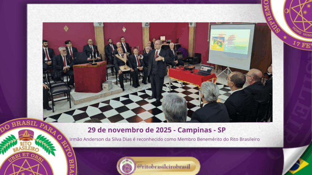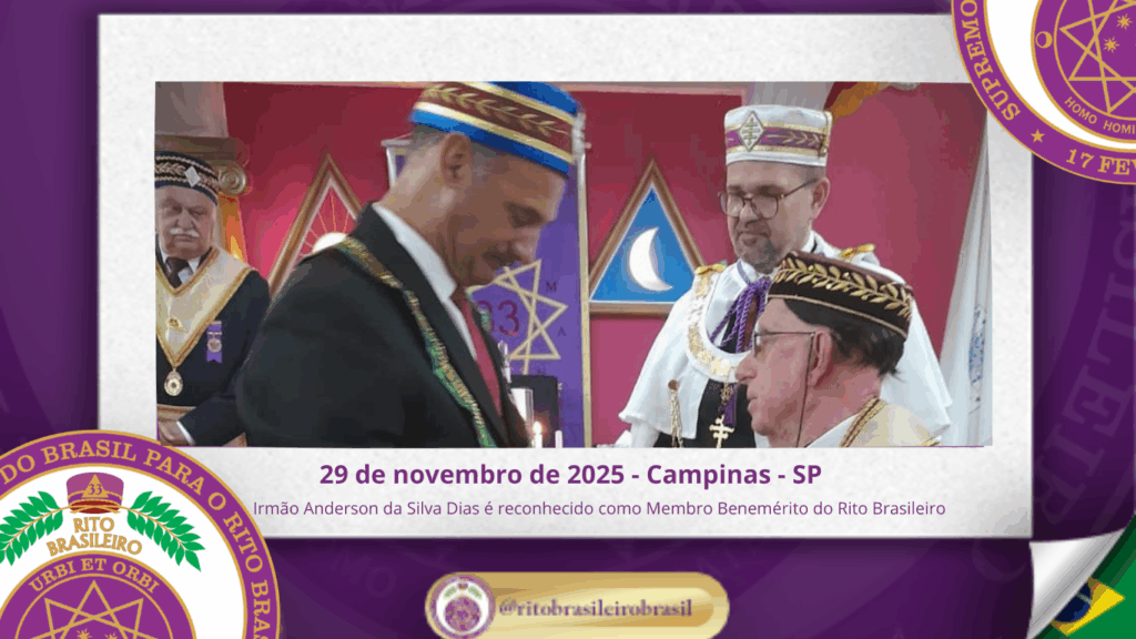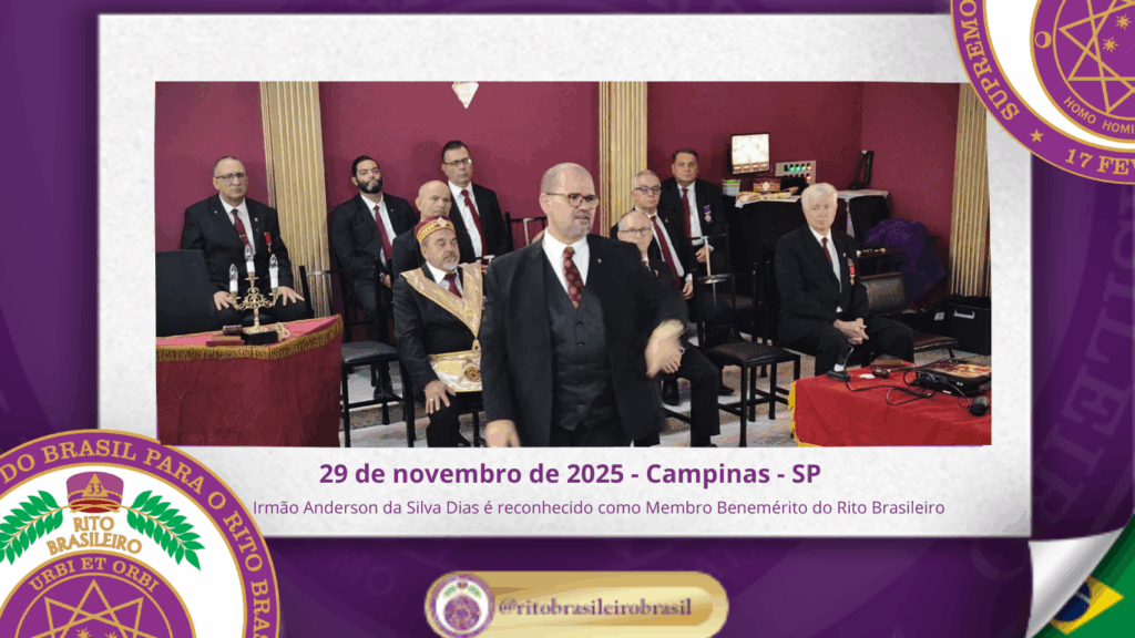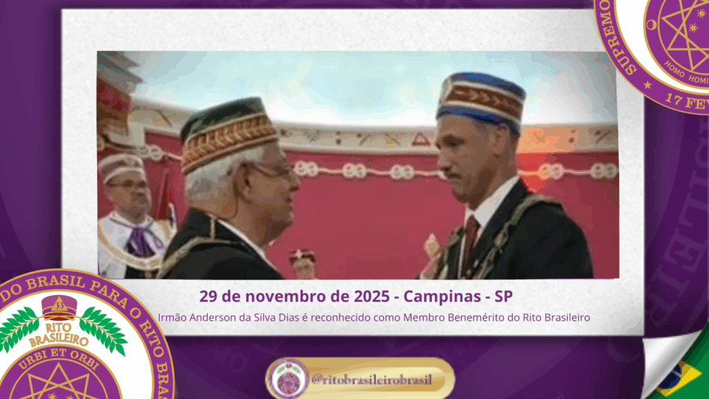 Em momento solene e de grande emoção, o Supremo Conclave do Brasil, por meio do Ato nº 6.557, de 25/11/2025, concedeu o Título de Membro Benemérito ao então Eminente Irmão Anderson da Silva Dias.