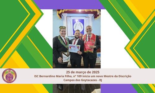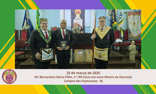 No dia 25 de março de 2025, a 13ª Delegacia teve a honra de realizar, em conjunto com o Ilustre Sublime Capítulo Bernardino Maria Filho nº 109, do Vale de Campos dos Goytacazes-RJ, a sessão de Colação de Grau 4 (Mestre da Discrição) do Irmão Leonardo Quintanilha.