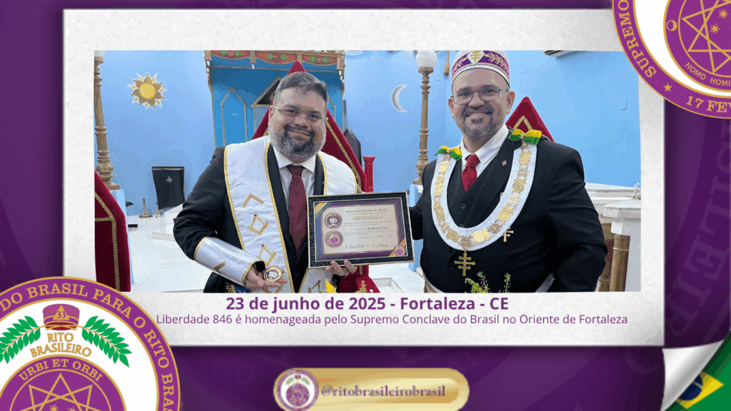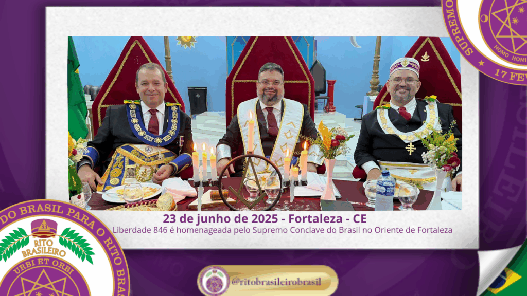 No dia vinte e três de junho de dois mil e vinte e cinco, a convite do Eminente Irmão Leonardo de Almeida Monteiro, Grão-Mestre do Grande Oriente do Brasil – Ceará, o Soberano Grande Primaz Juliano Coelho Braga esteve presente no Oriente de Fortaleza, no Ceará, na Augusta e Respeitável Loja Simbólica Liberdade, nº 846, por ocasião de um significativo Jantar Ritualístico.