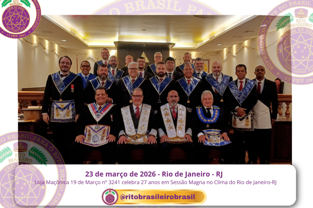 No dia 23 de março de 2026, a Loja Maçônica 19 de Março nº 3241 realizou uma Sessão Magna comemorativa no Clima do Rio de Janeiro-RJ, na AMO Rio, na Barra da Tijuca, celebrando seus 27 anos de fundação em uma noite marcada pela fraternidade e valorização da história da Oficina.