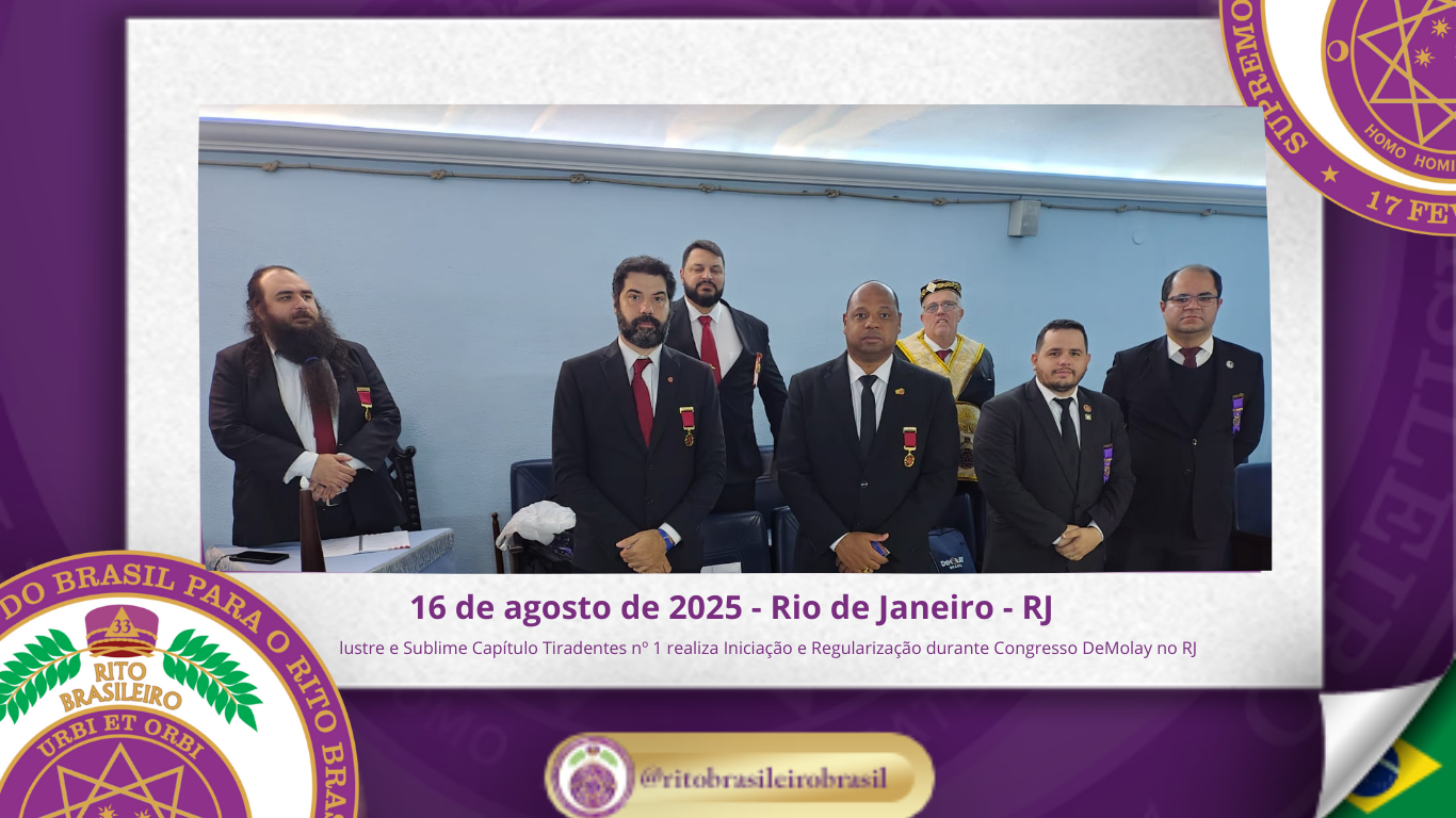 No dia dezesseis de agosto de dois mil e vinte e cinco, durante a realização do 5º Congresso Estadual da Ordem DeMolay do Estado do Rio de Janeiro, o Ilustre e Sublime Capítulo Tiradentes, nº 1, ao Clima do Rio de Janeiro, realizou uma expressiva Sessão de Iniciação ao Grau 4 – Mestre da Discrição, bem como a Regularização de diversos Ilustres Irmãos em Graus da hierarquia do Rito Brasileiro.
