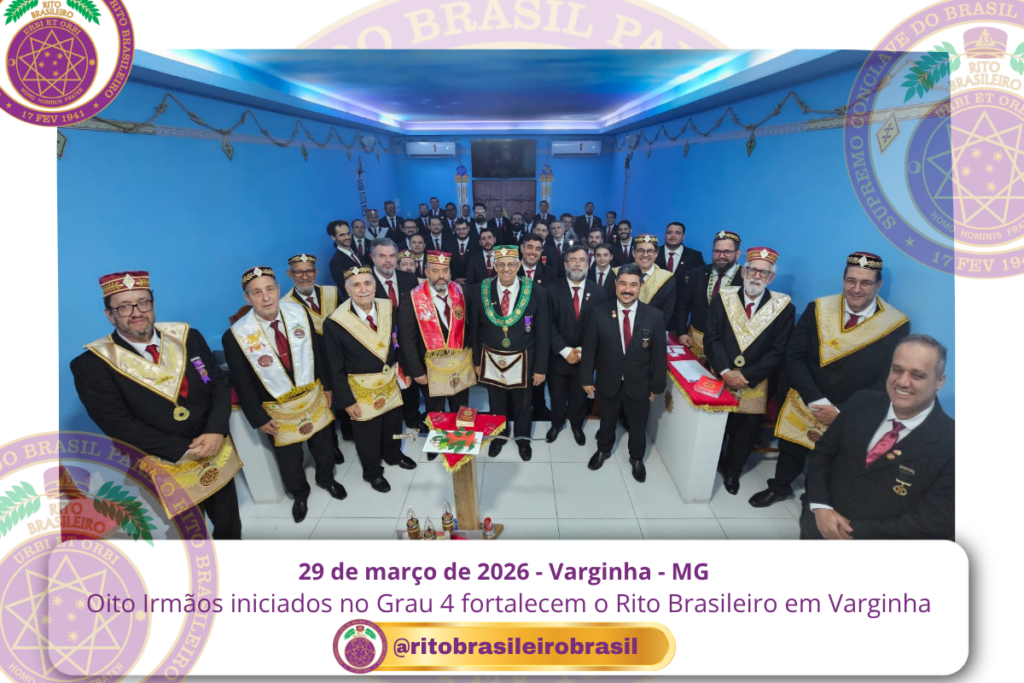 No dia 29 de março de 2026, ao Vale de Varginha/MG, o O Ilustre e Sublime Capítulo Sul de Minas nº 119 realizou Sessão Magna de Iniciação ao Grau 4 – Mestre da Discrição, marcando um momento de grande significado para os Altos Graus do Rito Brasileiro de Maçons Antigos, Livres e Aceitos.