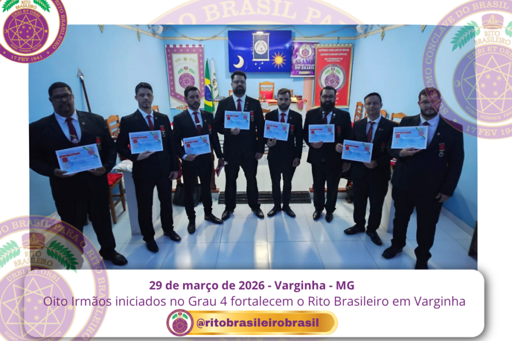 Cada novo Irmão iniciado representa mais uma luz que se acende no caminho do Rito Brasileiro, fortalecendo a missão de formar Servidores da Ordem, da Pátria e da Humanidade.