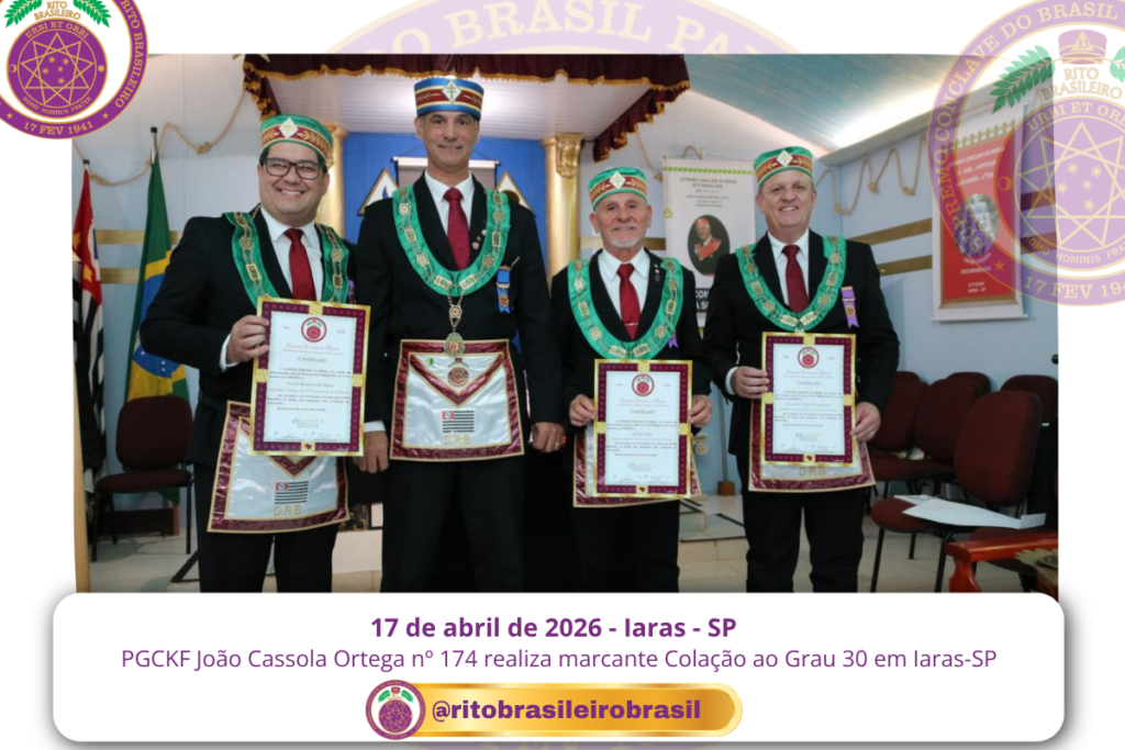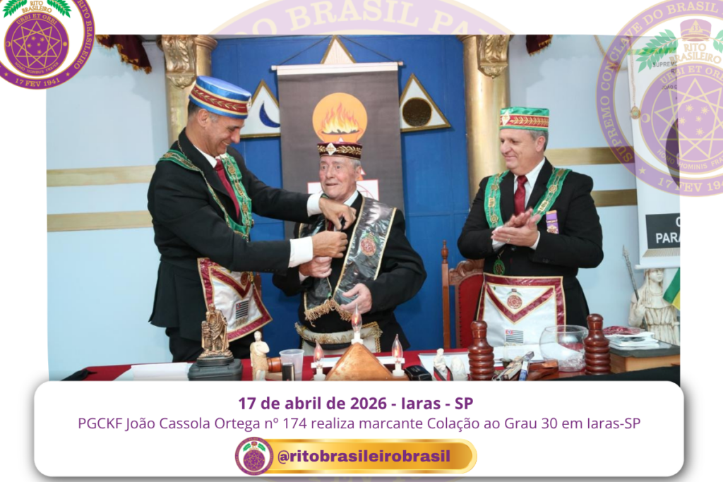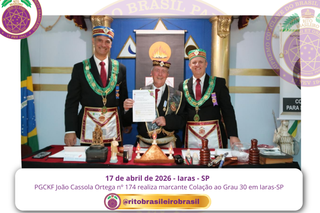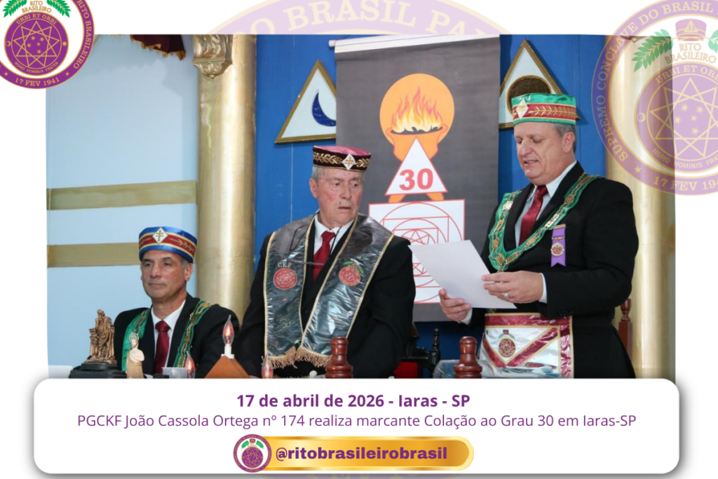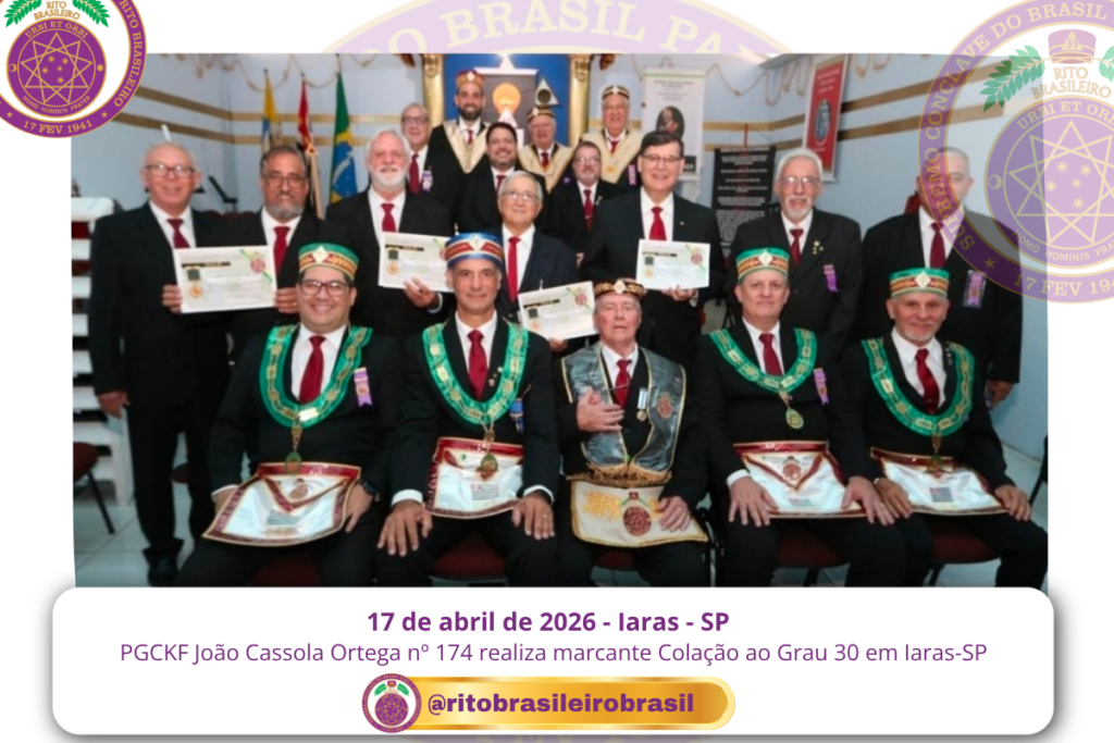 No dia dezessete de abril de dois mil e vinte e seis, ao Clima de Iaras, no estado de São Paulo, o Poderoso Grande Conselho Kadosch Filosófico João Cassola Ortega nº 174 realizou uma marcante Sessão Magna de Colação ao Grau 30 – Missionário da Filosofia, elevando quatro novos Obreiros aos Altos Graus do Rito Brasileiro.