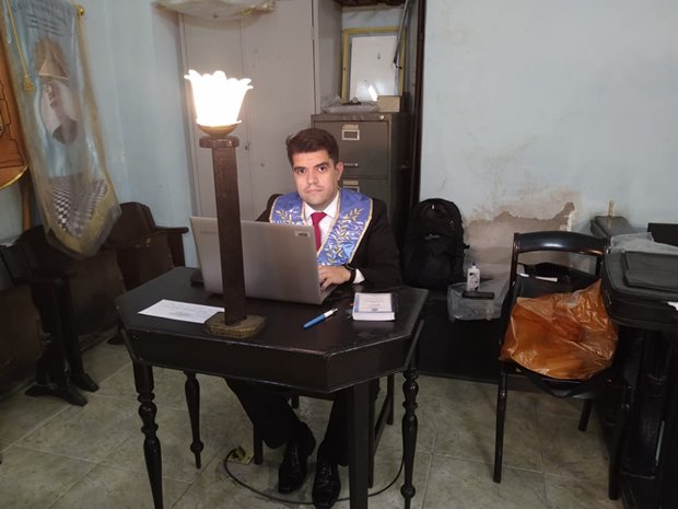 Ainda, atuaram como 1º Diácono, o Ilustre Irmão MARCO ANTONIO LOPES MARINS, e como 2º Diácono, o Ilustre Irmão GUTENBERGUE CERIBELLY JUNIOR