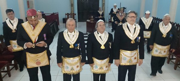 Na manhã do dia 11 de fevereiro, no Templo Maçônico da ARLS LIBERTAS QUAE SERA TAMEN Nº 3179, ao Or. de Vilhena, no Estado de Rondônia, o Sob.’. Ir.’. NEI INOCENCIO DOS SANTOS 33º, juntamente com os Sereníssimos Irmãos CESAR DOURADO 33º e TERUO MIZUNO 33º, sob a presidência do primeiro, participaram da SESSÃO MAGNA DE RECONHECIMENTO E RECEPÇÃO DE GRAU 33 NO RITO BRASILEIRO INVESTIDOS NOS ALTOS GRAUS DO RITO ADONHIRAMITA dos seguintes Irmãos: MÁRIO GUERREIRO MILEO 33º, PASCOAL DE AGUIAR GOMES 33º e RENATO COUTINHO DOS SANTOS JÚNIOR 33º