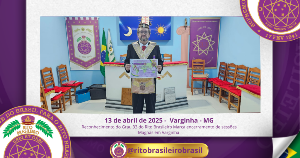 A Sessão, revestida de profunda simbologia e solenidade, teve como objetivo a Recepção e Reconhecimento do Eminente Irmão Rossini de Faria Lima, Grau 33 do Rito Escocês Antigo e Aceito, ao Grau 33 do Rito Brasileiro – Servidor da Ordem, da Pátria e da Humanidade, o mais elevado dos Altos Graus Filosóficos, culminando sua jornada maçônica neste Rito nacional.