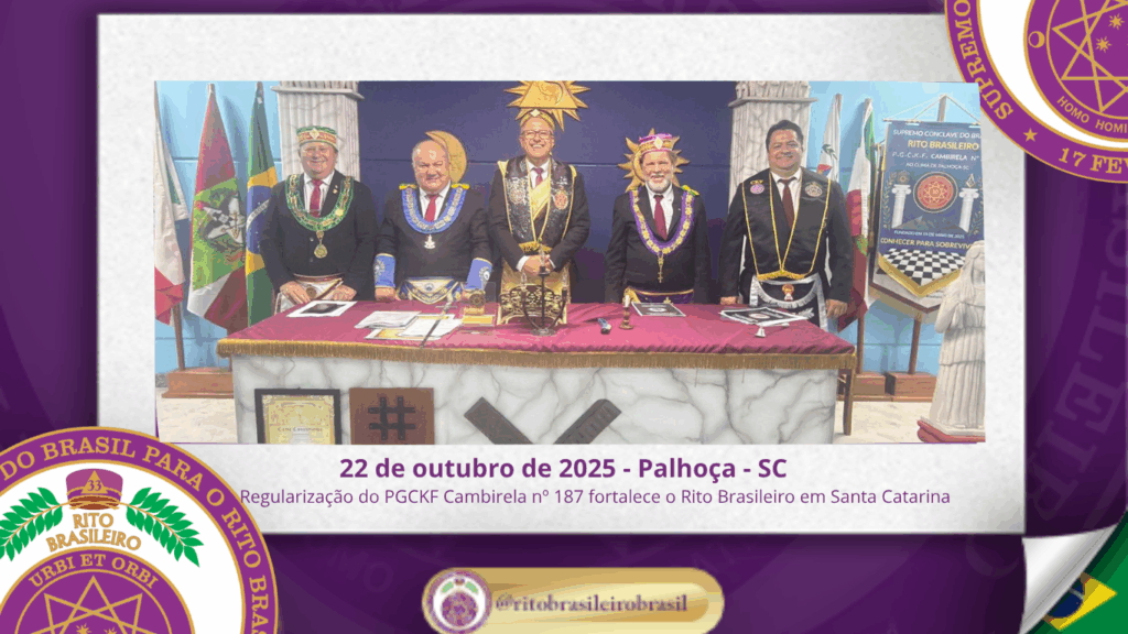 No dia vinte e dois de outubro de dois mil e vinte e cinco, os obreiros da 1ª Delegacia Litúrgica de Santa Catarina reuniram-se ao Clima de Palhoça, para uma marcante Sessão Especial de Regularização do Poderoso Grande Conselho Kadosch Filosófico Cambirela nº 187.