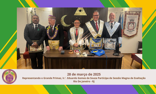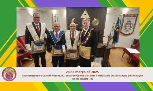 No dia 28 de março de 2025, com a honrosa presença do Sereníssimo Irmão Eduardo Gomes de Souza, Grande Chefe de Gabinete, representando o Grande Primaz, foi realizada uma Sessão Magna de Exaltação ao Grau de Mestre Maçom, marcando um momento de grande significado para a Oficina e para os Irmãos exaltados.