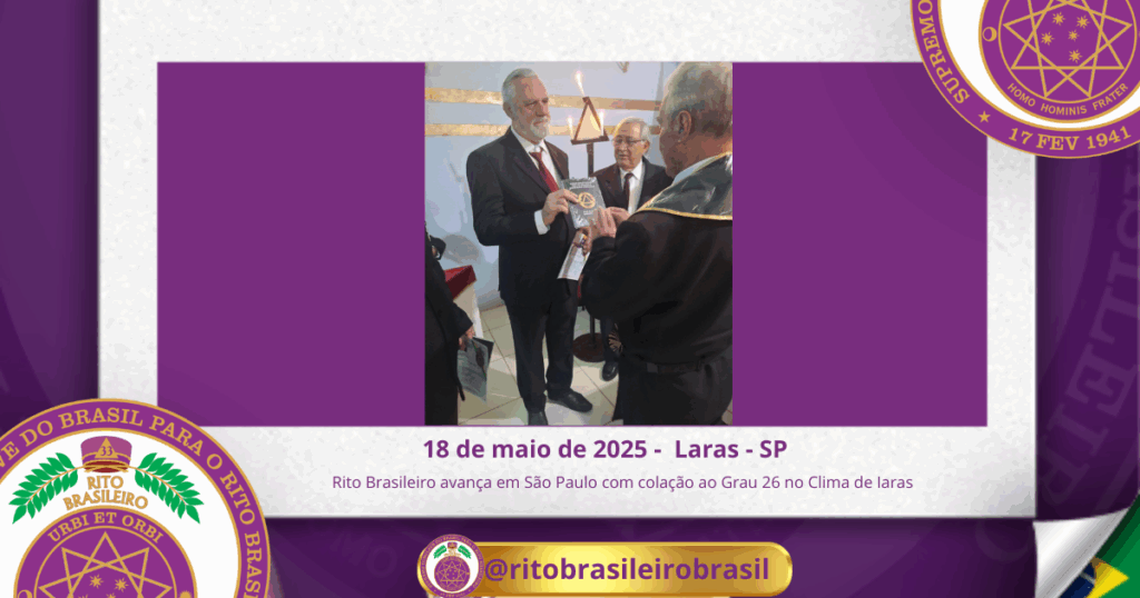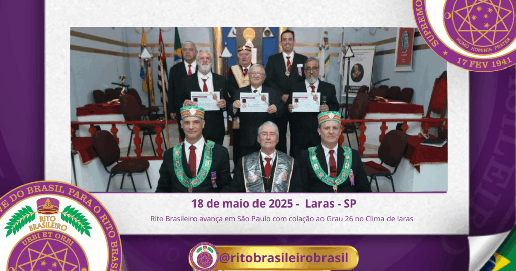 No dia dezesseis de maio de dois mil e vinte e cinco, o Vale de Iaras, ao Clima de São Paulo, foi palco de um importante marco para o Rito Brasileiro, com a realização da Sessão Magna de Colação ao Grau 26 – Missionário da Paz dos Altos Graus Filosóficos, conferido a três valorosos irmãos pertencentes ao Poderoso Grande Conselho Kadosch Filosófico João Cassola Ortega – nº 174.